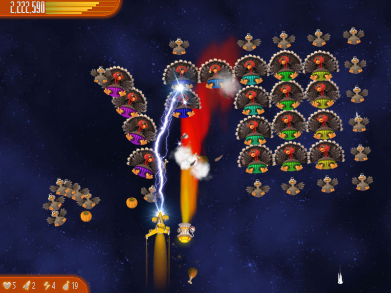 It's now time for you to fight for our ancestral right to turkey roast. Will you triumph over the foul fowls? Will mankind ever have Thanksgiving dinner again? Or will you end up as part of the menu in a galactic turkey restaurant?