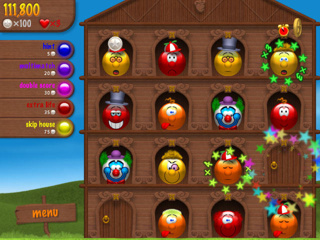 • Journey through Smileyville to keep smileys happy, visiting 8 neighborhoods and 50 houses!